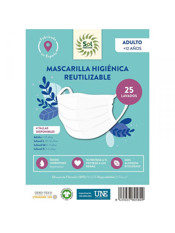 | MASCARILLA ALGODON ORGANICO HIGIENICA REUTILIZABLE ADULTO COLOR BLANCO XL - SOL NATURAL - 8435037805762 Descripción:La MASCARILLA ALGODÓN ORGÁNICO HIGIÉNICA REUTILIZABLE ADULTO COLOR BLANCO XL de SOL NATURAL es una opción ideal para quienes buscan protegerse de forma responsable y… | 7.95€ |